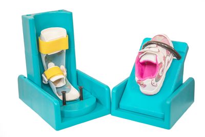The AFO Cradle and the Shoe Platform will accommodate both adult and pediatric size AFOs and shoes.